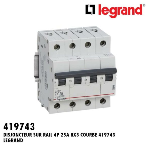DISJONCTEUR SUR RAIL 4P 25A RX3 COURBE 419743 LEGRAND