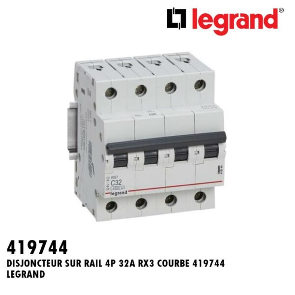 DISJONCTEUR SUR RAIL 4P 32A RX3 COURBE 419744 LEGRAND