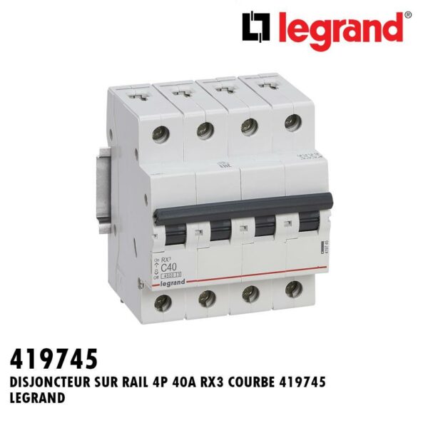 DISJONCTEUR SUR RAIL 4P 40A RX3 COURBE 419745 LEGRAND