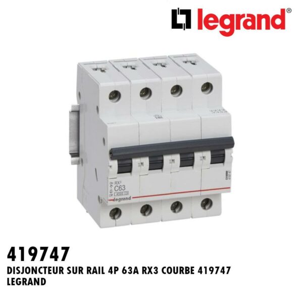 DISJONCTEUR SUR RAIL 4P 63A RX3 COURBE 419747 LEGRAND