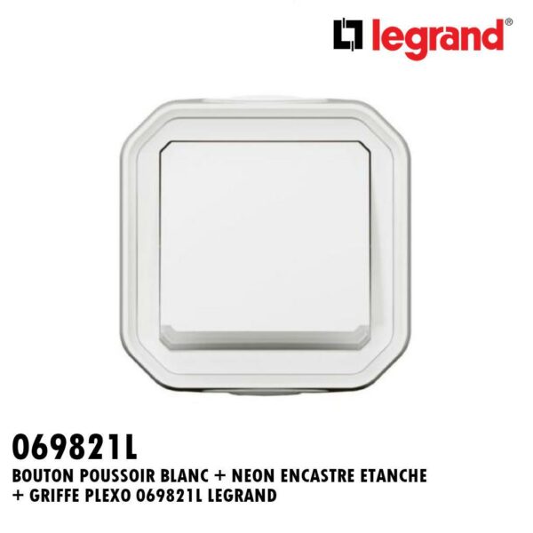 BOUTON POUSSOIR BLANC + NEON ENCASTRE ETANCHE + GRIFFE PLEXO 069821L LEGRAND