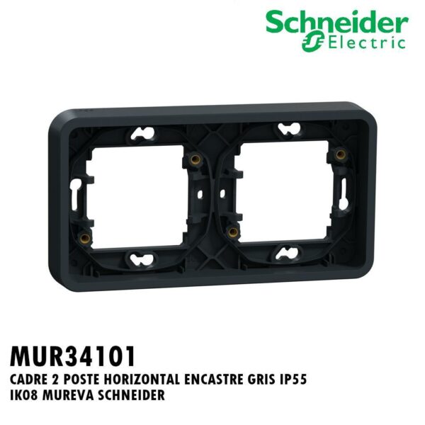CADRE 2 POSTE HORIZONTAL ENCASTRE GRIS IP55 IK08 MUREVA SCHNEIDER