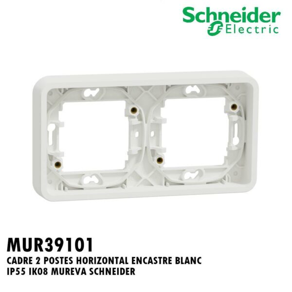 CADRE 2 POSTES HORIZONTAL ENCASTRE BLANC IP55 IK08 MUREVA SCHNEIDER