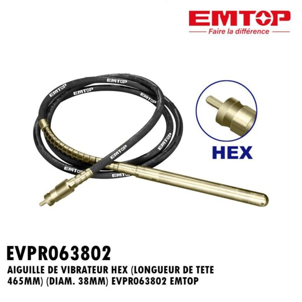 AIGUILLE DE VIBRATEUR HEX (LONGUEUR DE TETE 465MM) (DIAM. 38MM) EVPR063802 EMTOP