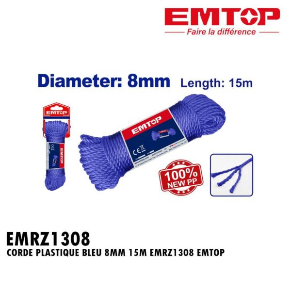 CORDE PLASTIQUE BLEU 8MM 15M EMRZ1308 EMTOP