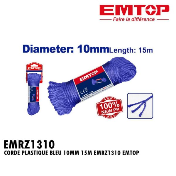 CORDE PLASTIQUE BLEU 10MM 15M EMRZ1310 EMTOP