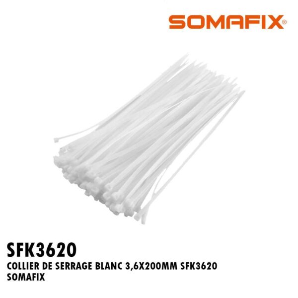 COLLIER DE SERRAGE BLANC 3,6X200MM SFK3620 SOMAFIX