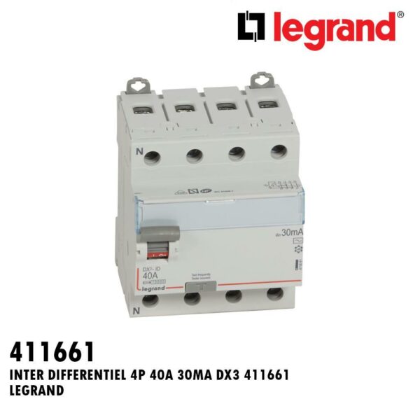 INTER DIFFERENTIEL 4P 40A 30MA DX3 411661 LEGRAND