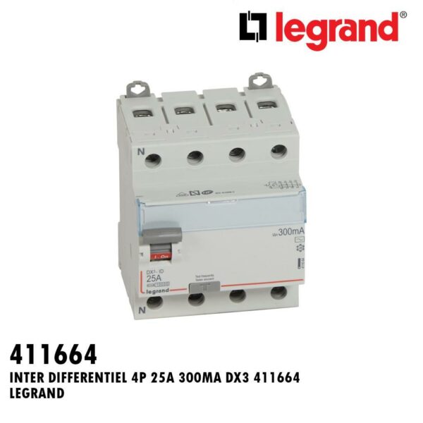 INTER DIFFERENTIEL 4P 25A 300MA DX3 411664 LEGRAND