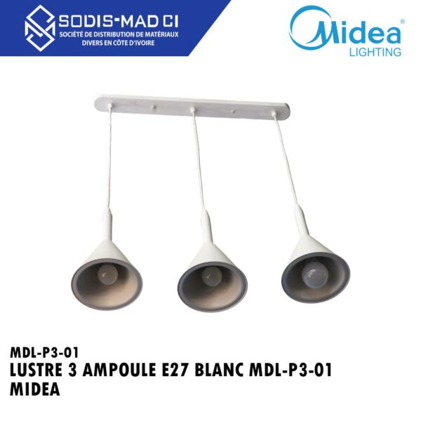 LUSTRE 3 AMPOULE E27 BLANC MDL-P3-01 MIDEA