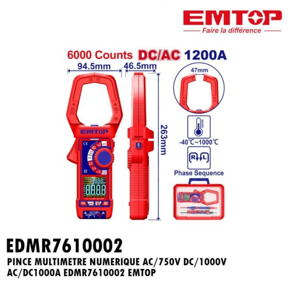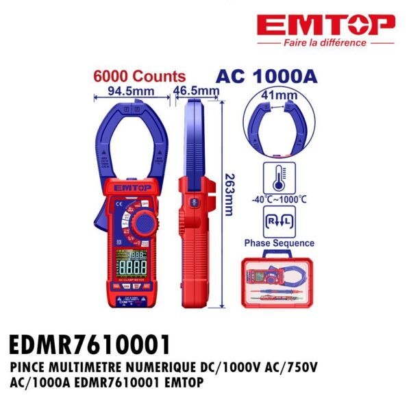 PINCE MULTIMETRE NUMERIQUE DC/1000V AC/750V AC/1000A EDMR7610001 EMTOP