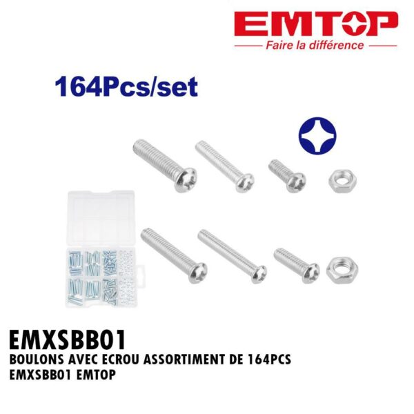 BOULONS AVEC ECROU ASSORTIMENT DE 164PCS EMXSBB01 EMTOP