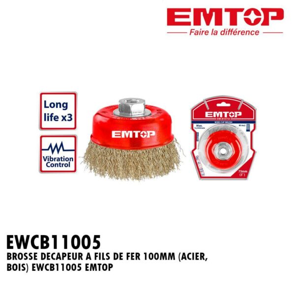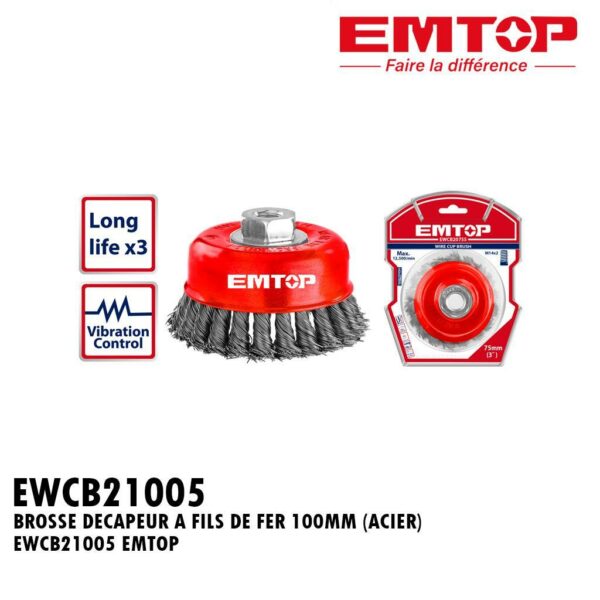 BROSSE A TASSE EN FIL DE FER 100MM 0.5X30MM EWCB21005 EMTOP