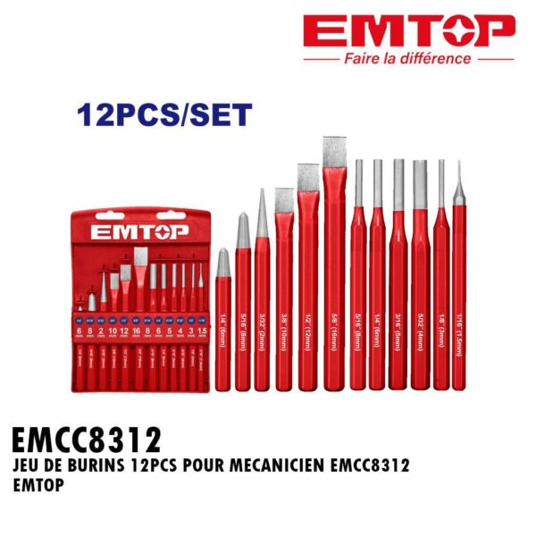 JEU DE BURINS 12PCS POUR MECANICIEN EMCC8312 EMTOP