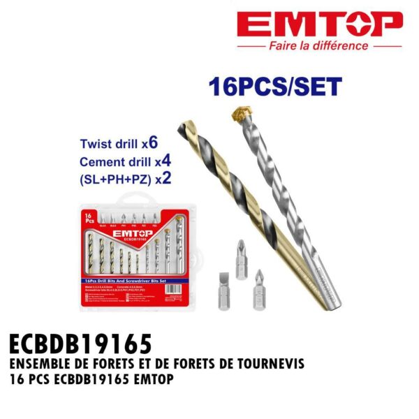 ENSEMBLE DE FORETS ET DE FORETS DE TOURNEVIS 16 PCS ECBDB19165 EMTOP