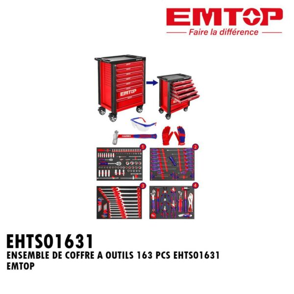 ENSEMBLE DE COFFRE A OUTILS 163 PCS EHTS01631 EMTOP