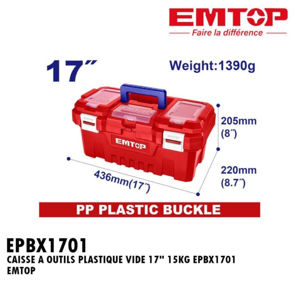 CAISSE A OUTILS PLASTIQUE VIDE 17″ 436X220X205MM EPBX1701 EMTOP