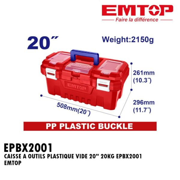 CAISSE A OUTILS PLASTIQUE VIDE 20″ 508X296X261MM EPBX2001 EMTOP