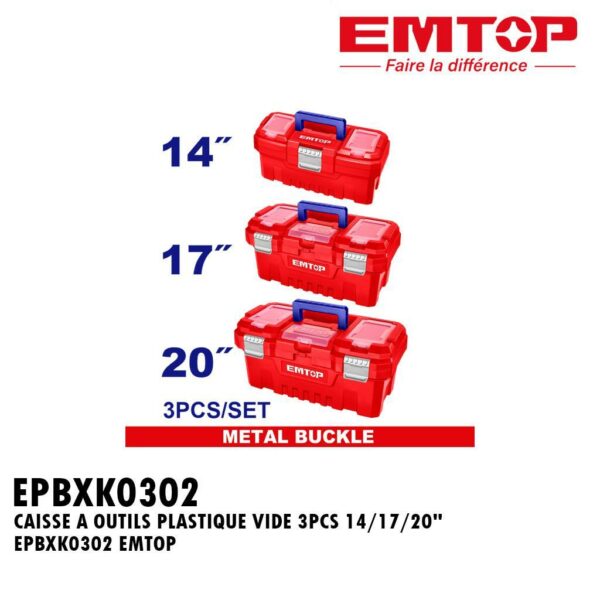 ENSEMBLE DE BOITES A OUTILS EN PLASTIQUE 3 PCS EPBXK0302 EMTOP
