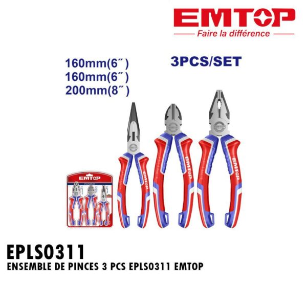 ENSEMBLE DE PINCES 3 PCS EPLS0311 EMTOP