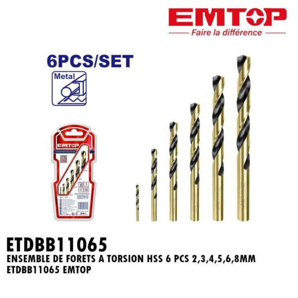 ENSEMBLE DE FORETS A TORSION HSS 6 PCS 2,3,4,5,6,8MM ETDBB11065 EMTOP