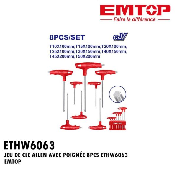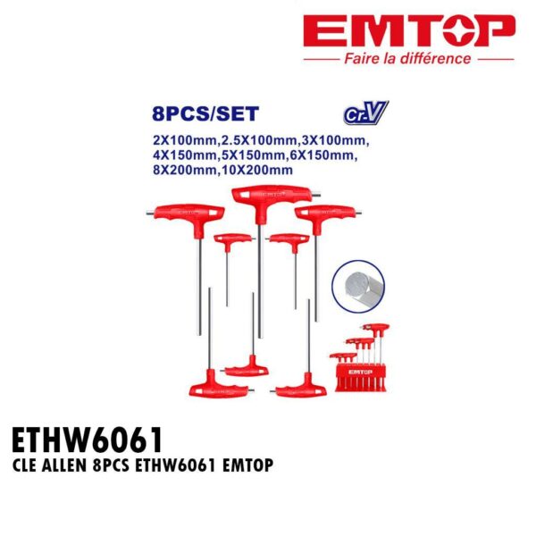 JEU DE CLE ALLEN AVEC POIGNÉE 8PCS ETHW6063 EMTOP