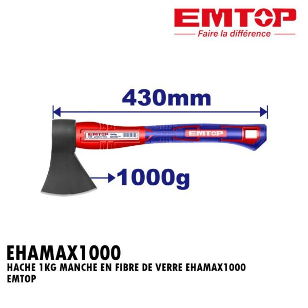 HACHE 1KG MANCHE EN FIBRE DE VERRE EHAMAX1000 EMTOP