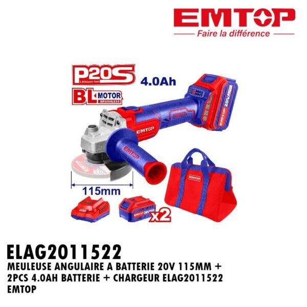 MEULEUSE DANGLE 115MM 4.0AH LI-ION ELAG2011522 EMTOP
