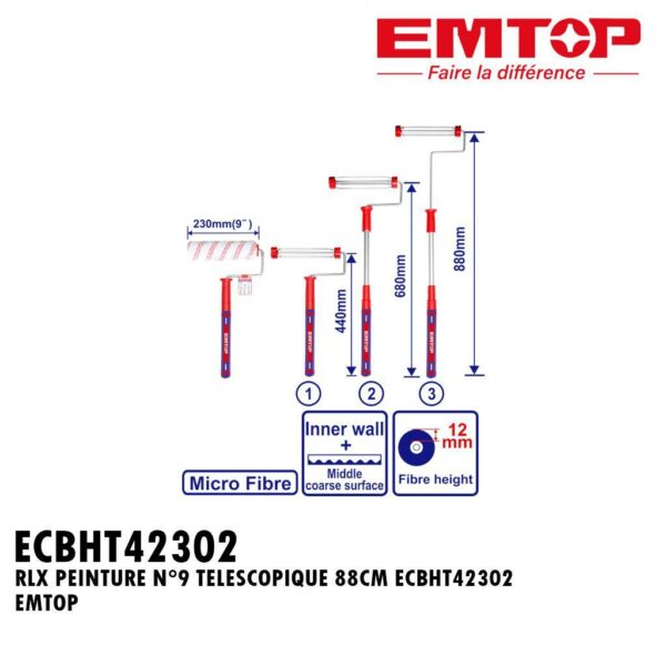 BROSSE A CYLINDRE TELESCOPIQUE 230MM/9″ (MIN:440MM-MAX:880MM) ECBHT42302 EMTOP