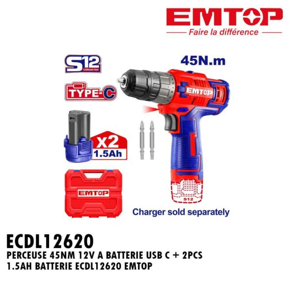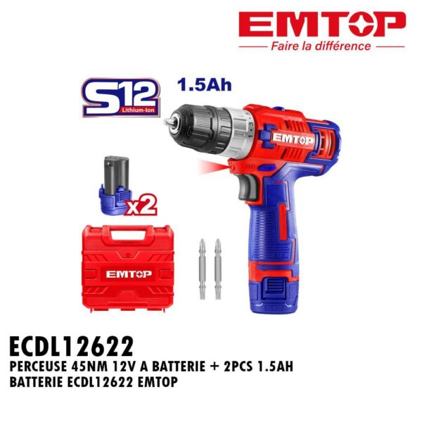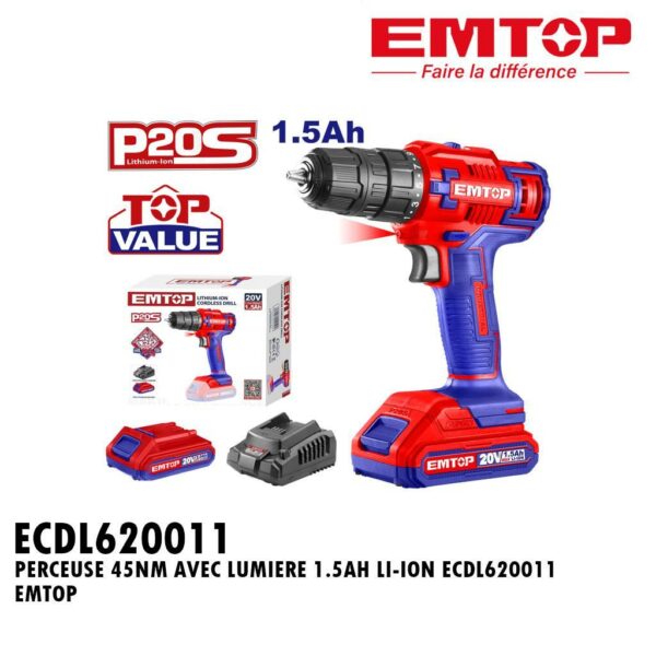 PERCEUSE 45NM 0-400/0-1500RPM LED 1.5AH LI-ION ECDL12620 EMTOP
