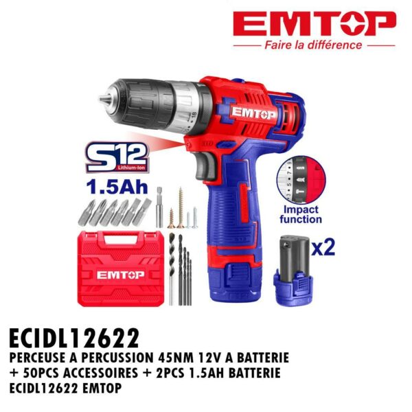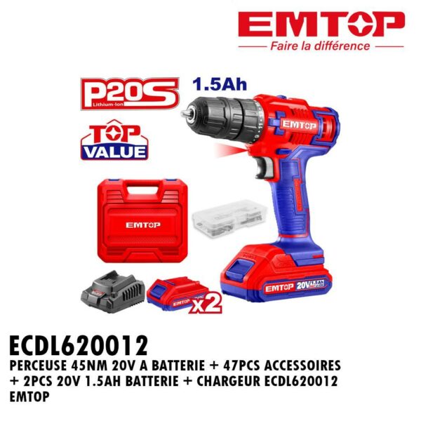 PERCEUSE 45NM AVEC 50PCS ACCESSOIRES 1.5AH LI-ION ECDL620012 EMTOP