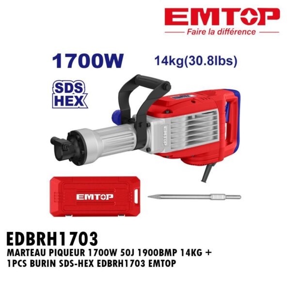 MARTEAU PIQUEUR 1700W 1900BMP 14KGS EDBRH1703 EMTOP