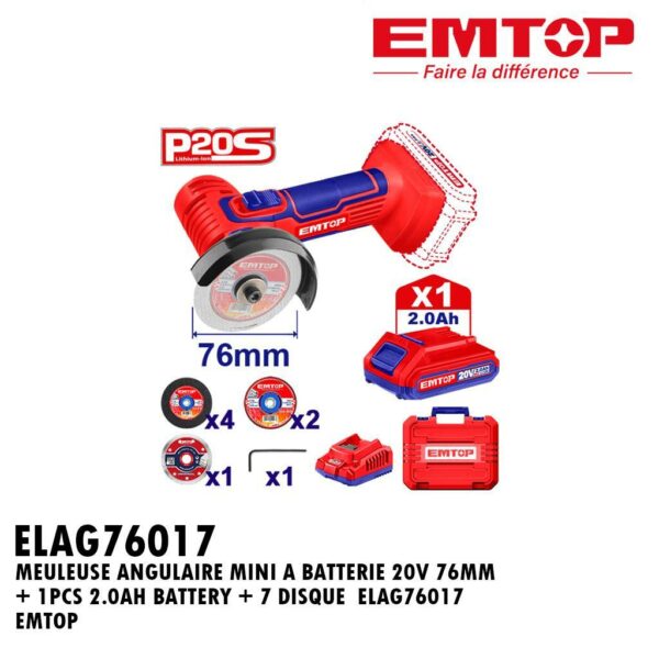 TRONCONNEUSE MINI AVEC 7 DISQUE 2.0AH LI-ION ELAG76017 EMTOP