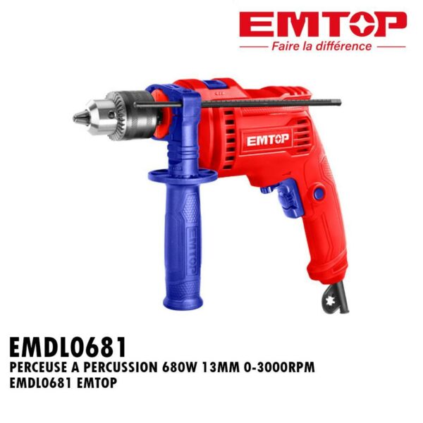PERCEUSE A PERCUSSION 680W 0-3000RPM 13MM EMDL0681 EMTOP