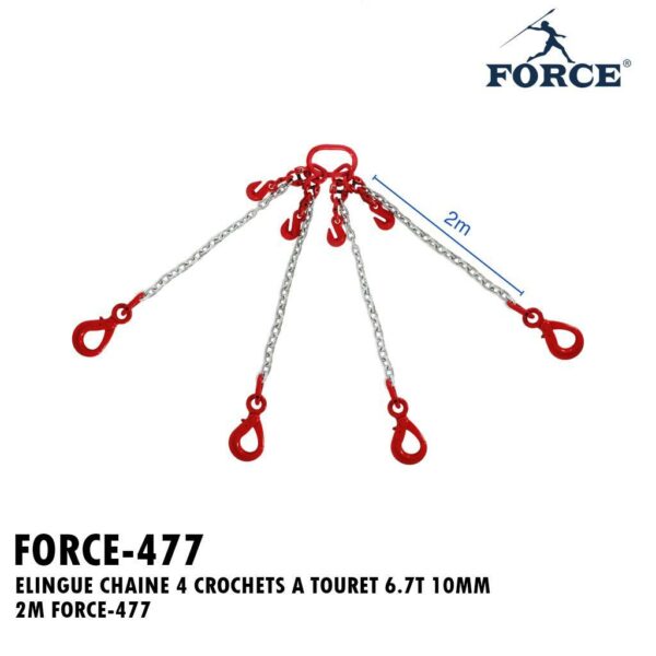ELINGUE CHAINE 4 CROCHETS A TOURET 6.7T 10MM 2M FORCE-477