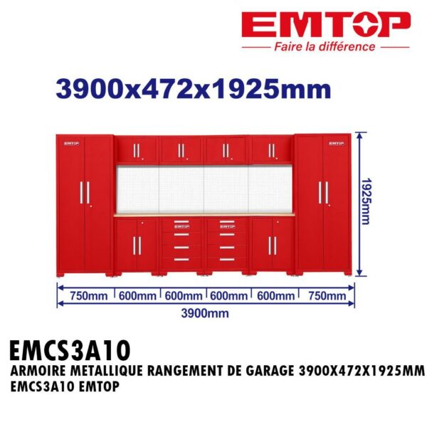 ARMOIRE METALLIQUE RANGEMENT DE GARAGE 3900X472X1925MM EMCS3A10 EMTOP