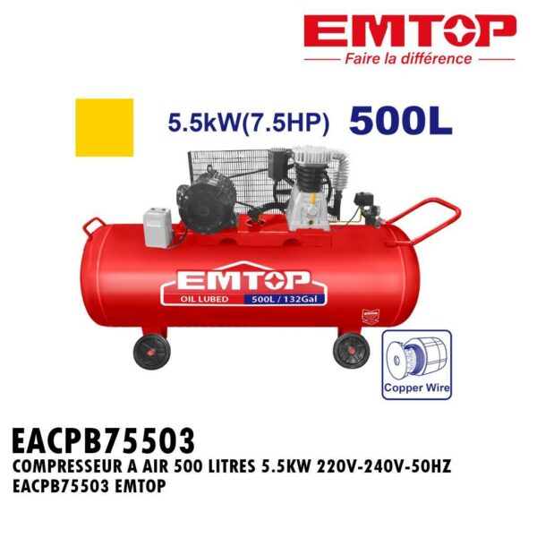 COMPRESSEUR A AIR 500 LITRES 5.5KW 220V-240V-50HZ EACPB75503 EMTOP
