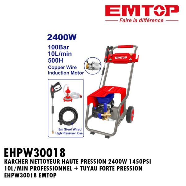 KARCHER NETTOYEUR HAUTE PRESSION 2400W 1450PSI 10L/MIN PROFESSIONNEL + TUYAU FORTE PRESSION EHPW30018 EMTOP