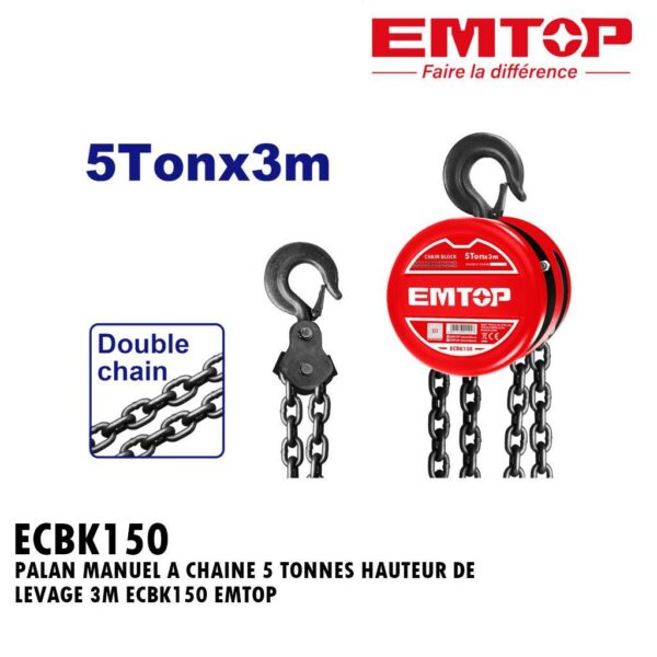 PALAN MANUEL A CHAINE 5 TONNES HAUTEUR DE LEVAGE 3M ECBK150 EMTOP