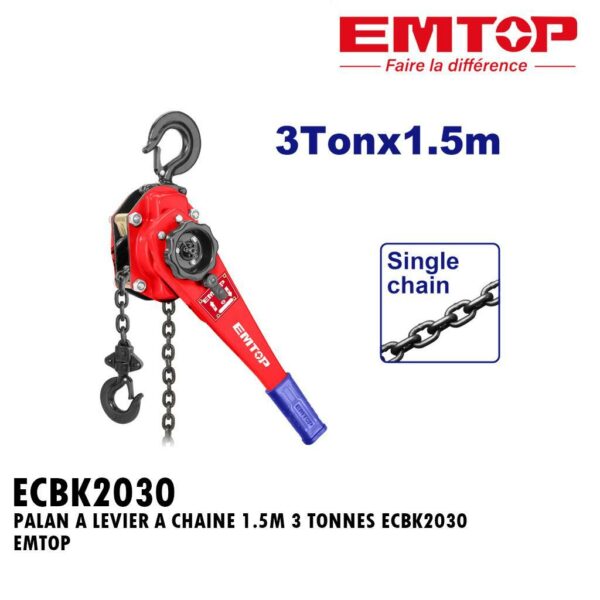 PALAN A LEVIER A CHAINE 1.5M 3 TONNES ECBK2030 EMTOP