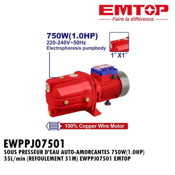 SOUS PRESSEUR 750W(1.0HP) 55L/MIN EWPPJ07501 EMTOP