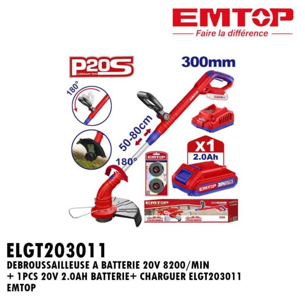 TONDEUSE A GAZON 8200/MIN 2.0AH LI-ION ELGT203011 EMTOP