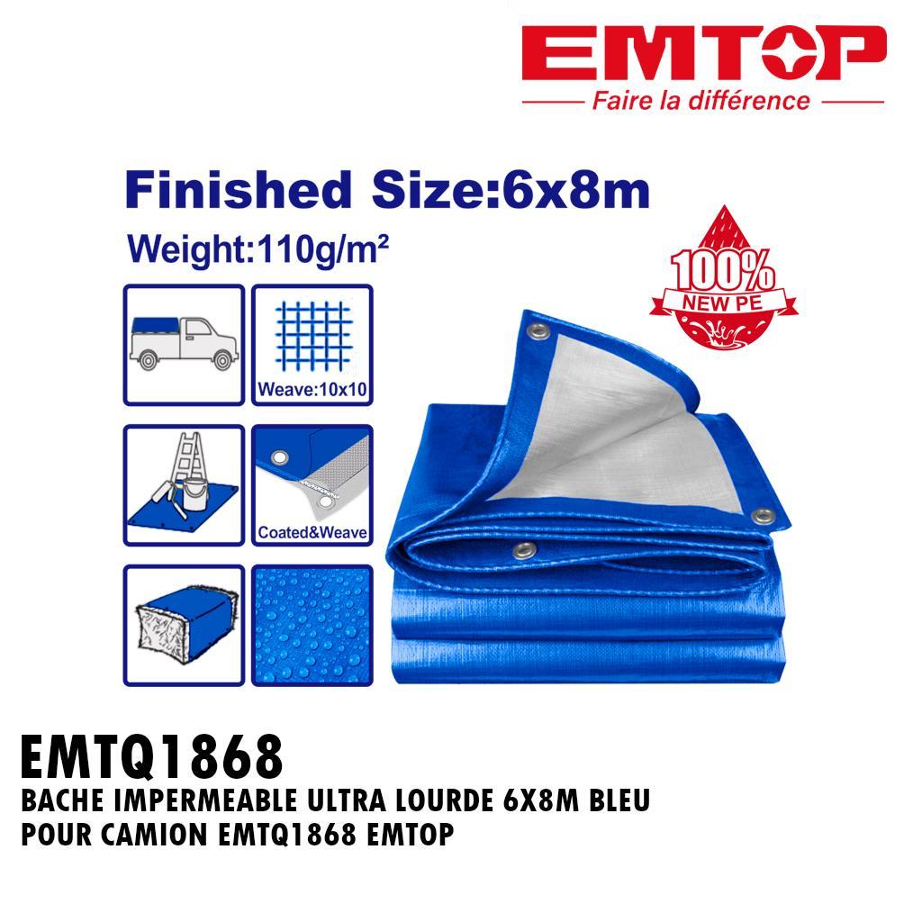 BACHE IMPERMEABLE ULTRA LOURDE 6X8M BLEU POUR CAMION EMTQ1868 EMTOP