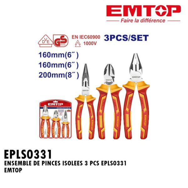 ENSEMBLE DE PINCES ISOLEES 3 PCS EPLS0331 EMTOP