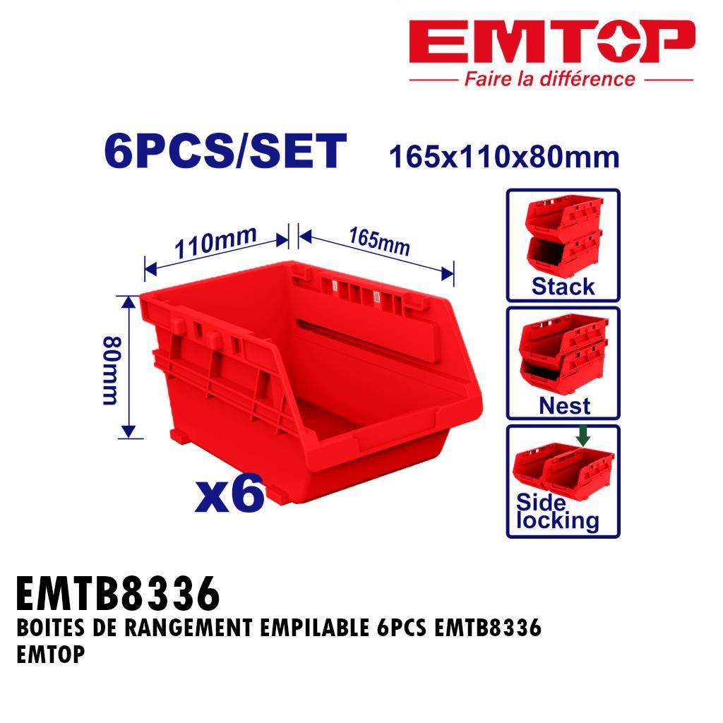 BOITES DE RANGEMENT EMPILABLE 6PCS EMTB8336 EMTOP
