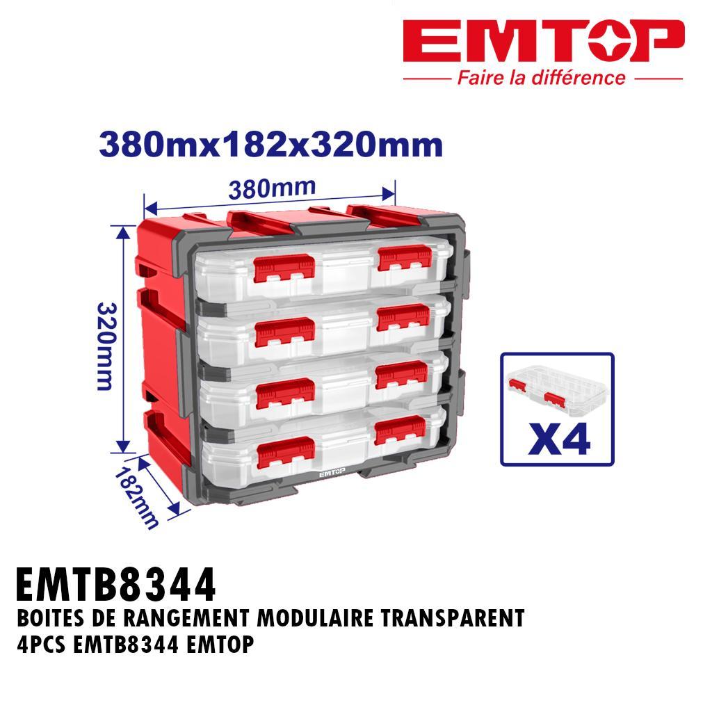 BOITES DE RANGEMENT MODULAIRE TRANSPARENT 4PCS EMTB8344 EMTOP