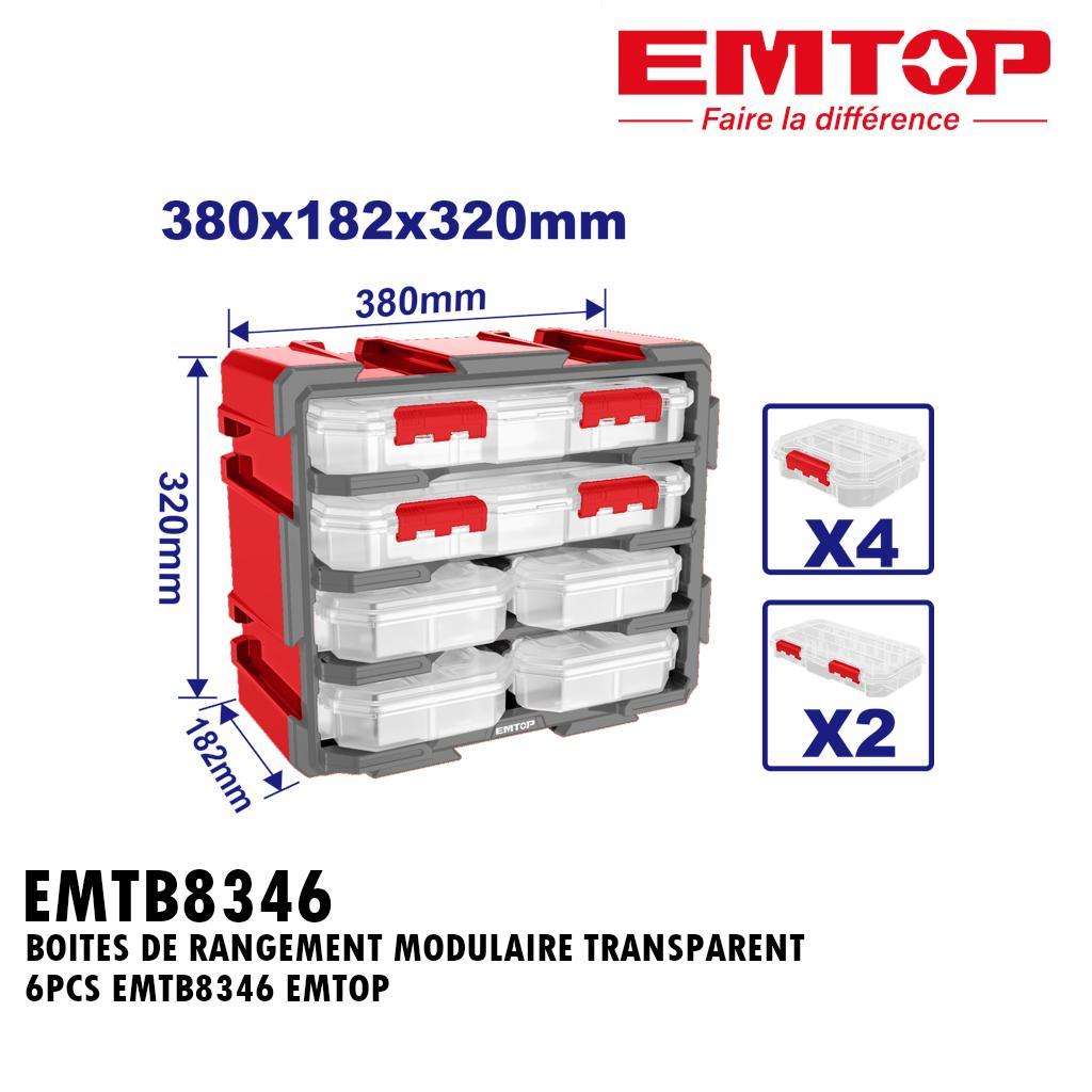 BOITES DE RANGEMENT MODULAIRE TRANSPARENT 6PCS EMTB8346 EMTOP