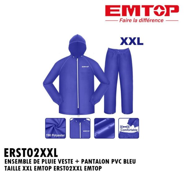 ENSEMBLE DE PLUIE VESTE + PANTALON PVC BLEU TAILLE XXL EMTOP ERST02XXL EMTOP