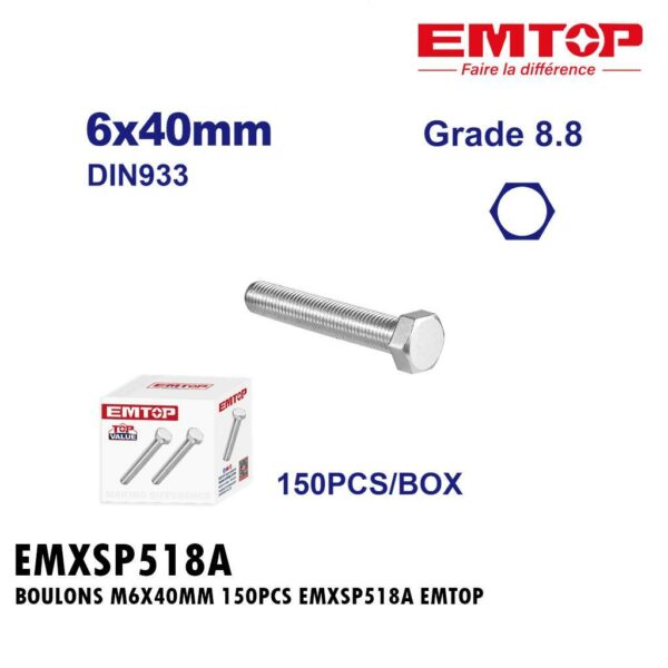 BOULONS M6X40MM 150PCS EMXSP518A EMTOP