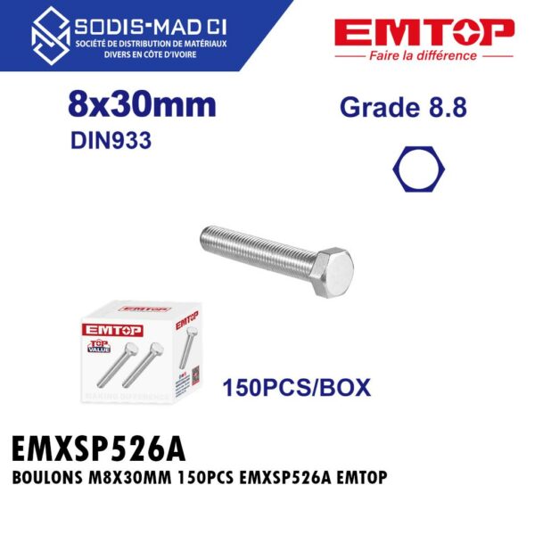BOULONS M8X30MM 150PCS EMXSP526A EMTOP